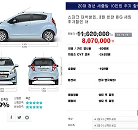 쉐보레 스파크 구입 할인팁 - 3월 한달 대박세일! 쉐보레 스파크, 3월한달 BIG 세일! 스파크 추가할인 더! 쉐보레가 국내 도입 4주년을 맞아 파격적인 세일에 돌입 했어요! 3월 한달동안 스파크를 구입하는 고객에게는 더욱더 파격적인 세일을 한다고 하는데요! 봄바람이 살랑살랑 ~ 불어오는 드라이브의 계절이 맞이하여 귀염둥이 스파크를 구입 계획을 하시는 분들은 놓치면 후회할 3월 대박세일을 저와 함께 알아 보도록 해요~ ▶ 3월 한달만!! 스파크 놀라운 혜택 1) 현금 구매시 기본 80만원 할인!2) 기존 혜택에 마이너스 할부 프로그램 추가!3) 20대 고객 or 새출발 고객 10만원 추가 할인4) 마티즈 CVT 보유차량 반납고객 특별지원 최대 245만원5) 쉐보레 로열티 할인 (쉐보레 차량 재구매시) 얼마나 할인이 되는지 궁금해서 대리점에 가서 직접 견.. 더보기 이전 1 ··· 1081 1082 1083 1084 1085 1086 1087 ··· 4930 다음