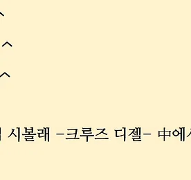 해설 : 배기량별로 다양한 크루즈 오너의 마음을 이모티콘으로 승화시켰습니다. 해설 : 새 차 비닐을 소중한 사람과 함께 벗기고 싶어하는 작가의 마음이 잘 표현되었다고 봅니다. 해설 : 아직도 뜯지 못한 동반석이 작가의 외로움을 더욱 증폭시키고 있습니다. 해설 : 재산세보다 비싼 자동차 세금에 대한 슬픔이 엿보입니다. 해설 : 팝콘, 피자, 음료, 프렌치프라이, 샌드위치, 핫도그, 시리얼, 아이스크림, 과일, 필리 치즈 스테이크 샌드위치가 운전 중에 먹지 말아야 할 10대 음식이라는데, 우리에게는 김밥이 최고라는 것을 잘 표현했습니다.