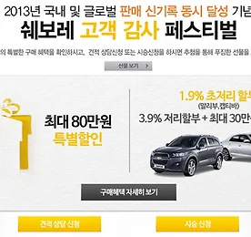 쉐보레 2014년 2월 판매조건, 고객감사 페스티벌을 만나보세요 판매 신기록 달성 기념 고객 감사 페스티벌, 쉐보레 2월 판매조건 알아보기 쉐보레가 2013년 국내 및 글로벌 판매 신기록을 동시달성했습니다. 이에따라 고객분들께 풍성한 선물과 다양한 혜택을 제공하는 쉐보레 고객 감사 페스티벌이 진행중인데요. 쉐보레 2월 판매조건을 알려드립니다. 쉐비 고객감사 페스티벌을 통해 스파크EV, 다마스, 라보, 카마로를 제외한 쉐보레 전 차종에 최대 80만원을 지원하는 혜택을 드립니다. 또한 초저리 할부와 특별지원 등까지 풍성한 혜택들이 여러분을 기다립니다. >> 2월 쉐보레 판매조건 자세히 보기 >> 쉐보레 차종별 2월 구매혜택 자세히 보기 2월 한 달 동안 쉐보레 고객 감사 페스티벌을 통해 최대 80만원 지원, 캡티바 전 모델과 말리부 LTZ 1.9% 초저리할부 및 최대 4.. 더보기 이전 1 ··· 1621 1622 1623 1624 1625 1626 1627 ··· 4930 다음