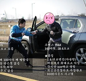 일반인 vs 쉐보레 트랙스의 시속별 달리기 시합, 승자는? 쉐보레 트랙스에 도전한다! 시속별 달리기 시합, 그 승자는? 안녕하세요. 생활밀착형 블로거 다파라 입니다. 우사인볼트는 세계에서 가장 빠른 사나이 입니다. 2009년 그의 100미터 기록은 9.58초를 기록하며 '인간 탄환' 이라는 닉네임을 얻게 되었죠. 일반인 다파라의 초등학교때 100미터 기록은 13.5초(기억이 가물가물...)입니다. 여튼 동네에서 탑 클래스였습니다. 궁금했습니다. 트랙스랑 달리기 시합(약100미터)을 하면 이길 수 있을까? 어른곰 | 말도 안되지... 초반에만 이길 수 있지. 하지만 가속되는 순간부터 다파라는 패배할꺼야. 난 열심히 사진 찍어줄게. 320Nm | 트랙스는 1.4터보엔진, Gen2 6단미션, 소형SUV, 가솔린을 연료로 사용하지. 140마력, 20.4토크... 이건 .. 더보기 이전 1 ··· 2127 2128 2129 2130 2131 2132 2133 ··· 4930 다음