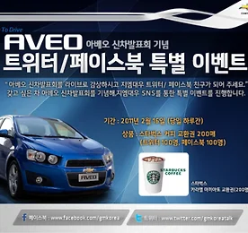 Fun To Drive AVEO, 아베오 신차발표회 기념 트위터/ 페이스북 이벤트! 오래기다리셨습니다! 드디어 오늘 '갖고 싶은 차' 아베오가 베일을 벗고 여러분을 찾아갑니다. 2월 16일 오전 8시 30분, 드디어 오늘 용산 전쟁기념관내 쉐보레 타운에서 쉐보레 아베오(Aveo)의 신차발표회가 열리는데요. 쉐보레 아베오(Aveo)의 후끈후끈한 신차발표회 현장의 열기를 라이브캐스트를 통해 감상하시고 따끈따끈한 커피도 받아갈 수 있는 일석이조의 이벤트를 지금부터 소개해드리겠습니다. 지엠대우 톡 스퀘어를 통해 이미 소개드린바 있듯이 쉐보레 아베오(Aveo) 신차발표회 현장을 오전 8시 30분 부터 인터넷생중계로 전달해드릴텐데요. 지엠대우 톡 스퀘어, 쉐보레 아베오 사이트, 트위터, 페이스북, 지엠대우 모바일 어플리케이션을 통해 현장의 생생한 열기도 느껴보시고, 아베오(Aveo)가 준비한 SN.. 더보기 이전 1 ··· 3663 3664 3665 3666 3667 3668 3669 ··· 4930 다음