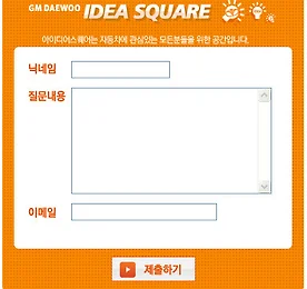 3차 아이디어스퀘어가 오픈하였습니다 - "겨울철 차량관리 방법은?" 오늘 밤부터 다시 추위가 온다고 합니다. 추위가 오기전! 여러분들은 겨울철 차량 관리를 어떻게 하시나요?? 다들 나만의 겨울철 차량 관리 노하우들이 있겠죠? 갑자기 저 다람쥐녀석이 겨울철 차량 관리에 대해서 언급을 하는 이유는 바로! 3차 아이디어스퀘어가 오픈을 하였기 때문입니다. 지난 달 2차 질문에서 아이디어스퀘어의 활성화를 위한 아이디어나, 아이디어스퀘어를 통해 얻고 싶은 아이디어를 남겨 달라고 했었는데요. '윤스, 알고싶어요' 님께서 겨울철 차량 관리 방법에 대해서 궁금하다고 의견을 내 주셨어요. 이를 반영하여~ 이번 질문은 "여러분만 알고 있는 겨울철 차량관리 방법은?" 입니다. 기간은 11월 1일 ~ 12일. 발표는 11월 16일 화요일에 발표 됩니다. 우수한 아이디어 및 사연을 남겨주시는 분.. 더보기 이전 1 ··· 3875 3876 3877 3878 3879 3880 3881 ··· 4930 다음